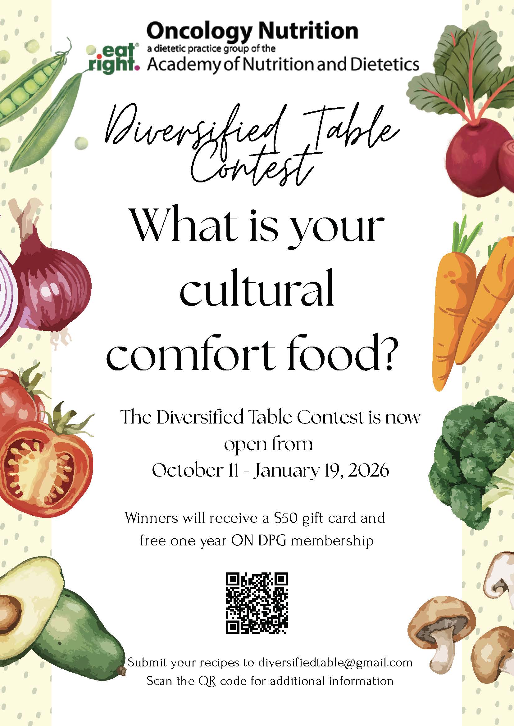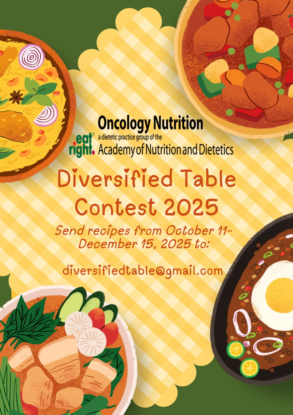 The Oncology Dietetic Practice Group (ON DPG) is excited to announce our Diversified Table Recipe Contest for 2025, and we invite you to participate!